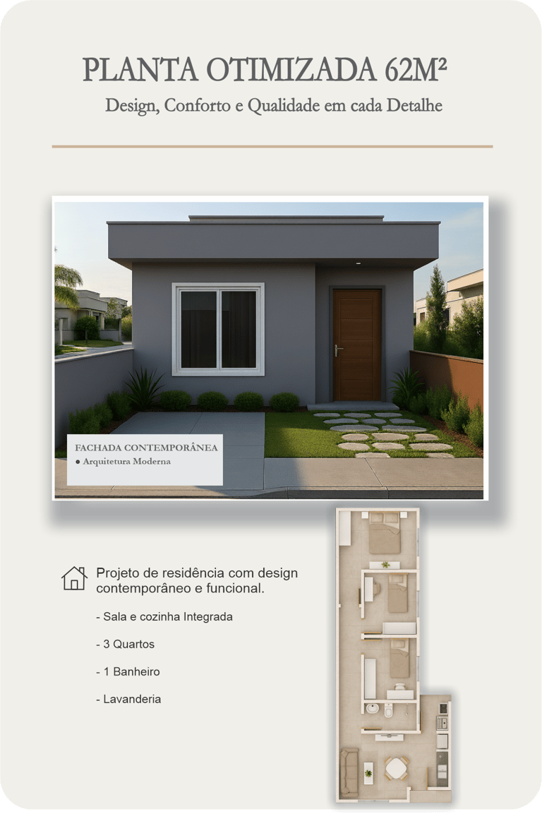 Cuidamos de tudo pra você: terreno, crédito, projeto e obra.